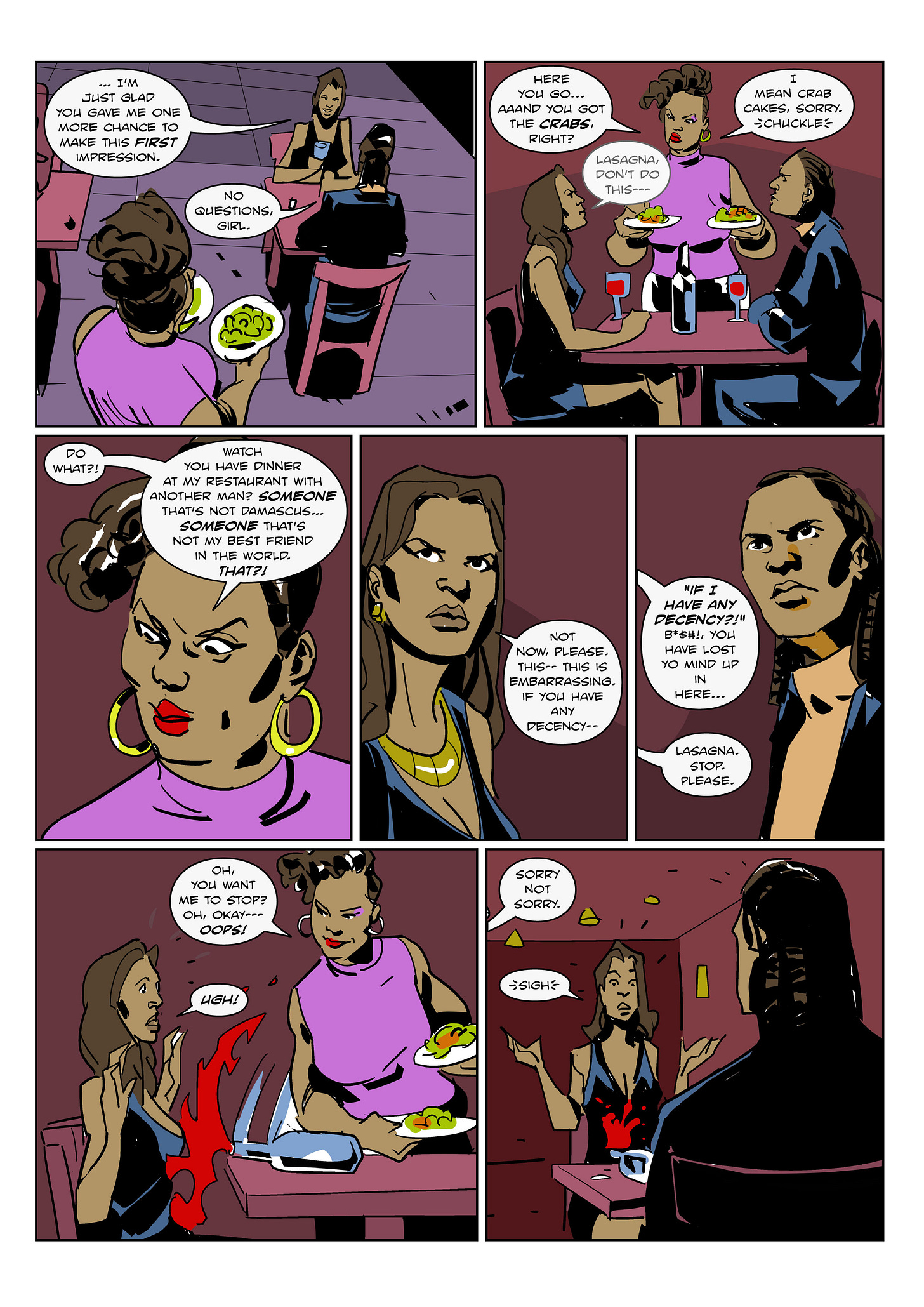 Previously in SEPARATE BUT EQUAL… Damascus attempts to be “normal” the next morning by fixing Crystal buttered toast before she heads out for work… But he burns it and she politely turns it down — and subsequently, his attempt to make things right after ruining her date. Moments later, in the car going to work, Crystal gets a phone call from her expunged date, asking her if she would be interested in a re-do; Crystal happily accepts.